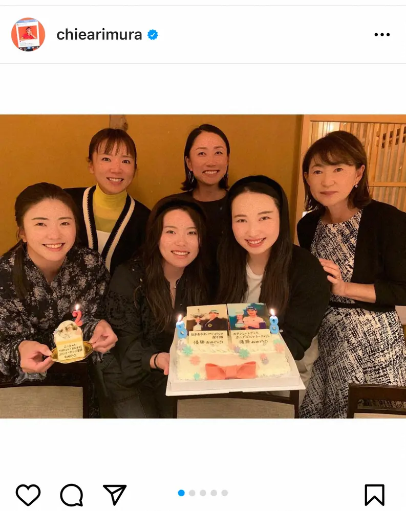 女子ゴルフの有村智恵(34=日本HP)が20日までに自身のインスタグラムを更新。女子プロゴルファーたちが集結した豪華ショットを披露し反響を呼んでいる。