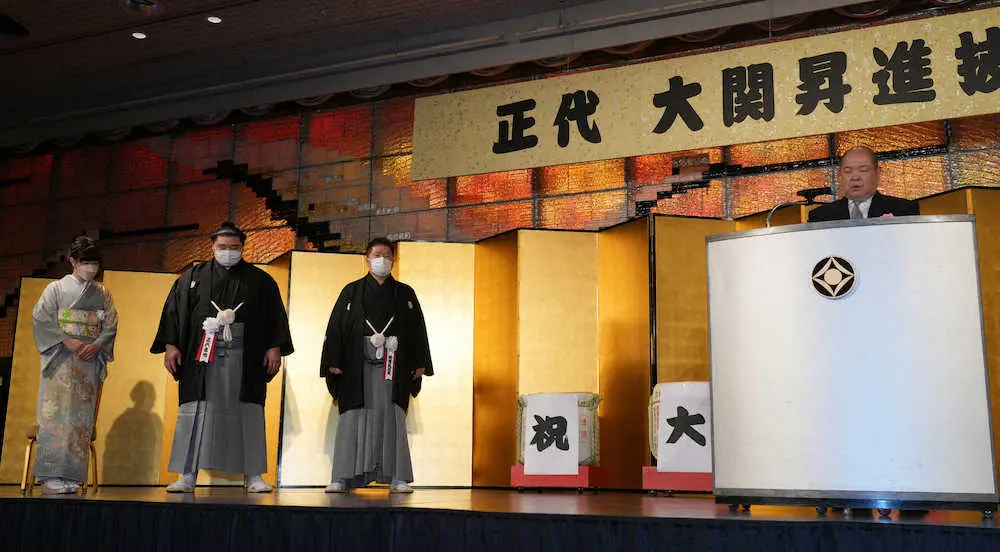 <正代大関昇進披露祝賀会>八角理事長(右から2人目)、時津風親方(右から3人目)らと鏡割りする正代(左から3人目)=撮影・郡司 修 Photo by スポニチ 正代大関昇進祝賀会で八角理事長が異例の“公開説教”「責任と緊張感、誇り… ギャラリーで見る この記事のフォト 2022年10月23日の画像一覧 もっと見る 2022年10月23日の画像をもっと見る