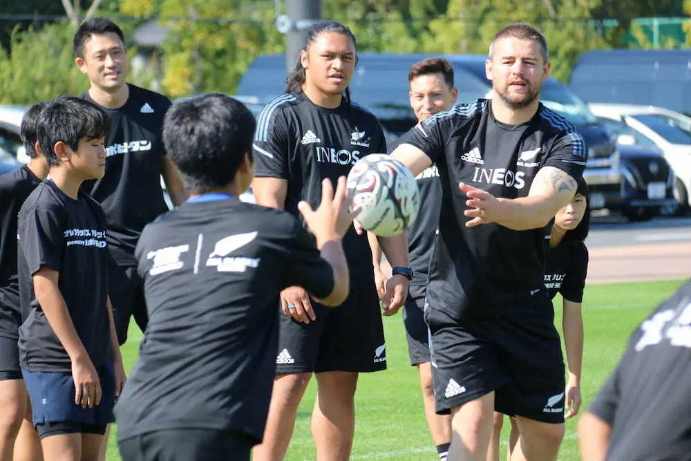 オールブラックス8人がラグビー教室 小中学生110人と交流