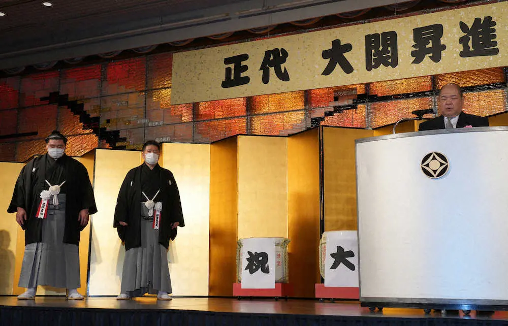 大関・正代 昇進祝賀会で八角理事長から“公開説教” 「責任感と緊張感を忘れずにいてほしい」