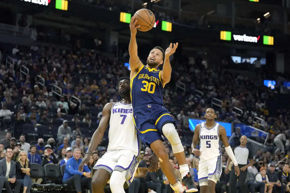 王者ウォリアーズは23日、地元サンフランシスコ(カリフォルニア州)でキングスを130―125(前半89―71)で下して2勝1敗。「ハーフ89点」はチーム歴代3位のハイスコアで、前半としては2018年10月29日のブルズ戦でマークした92点に次ぐ2番目の記録となった。また第2Qの50点(50―35)はこのクオーターとしてはチーム史上最多で、全クオーターでは3番目の得点となった。