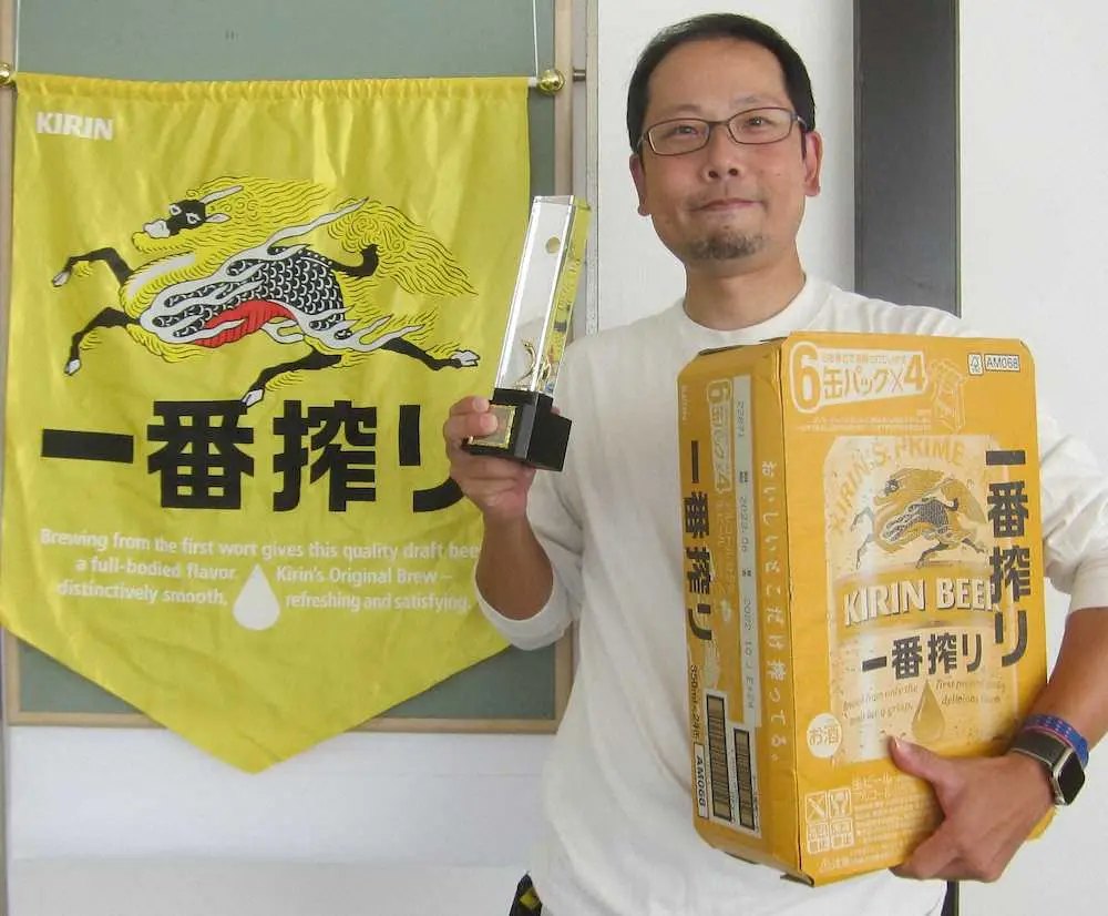 2年連続で決勝に進出した静間さんが初の栄冠に輝き「本当にビックリ!どうしよう」と喜びを爆発させた。昨年初参加で予選を通過。今年も6月第2予選を突破し、決勝大会の権利を得た。ゴルフ歴は20年。月2回程度のプレーを楽しんでいる。「同伴プレーヤーとハンデに恵まれた」と感謝の言葉を口にし、その場で副賞の一番搾りを分け合った。「来年も北コースで回りたい。連覇を目指します」と早くも意欲を語った。