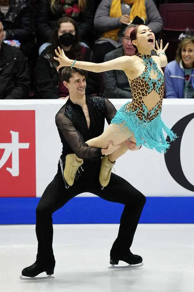 アップテンポな曲調に合わせて軽やかなステップなどを披露。会場の拍手を受け、後半の豪快なリフトでは歓声を浴びた。大きなミスなく最後まで演じきると、2人で抱き合い充実した表情を浮かべた。