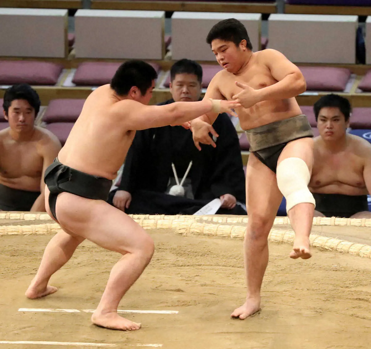 1週間前の稽古で左膝の外側側副じん帯を損傷しており「力が入らない状態」だったという。「自分の立ち合いができなかった」と、ほろ苦い初土俵に悔しさをにじませた。