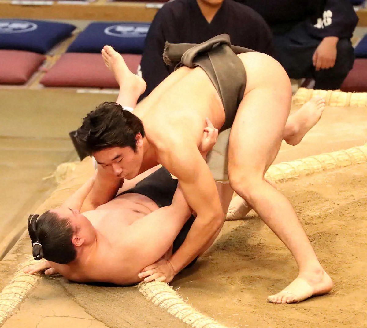 前日は、日大相撲部出身で体重169キロの琴佐藤(21=佐渡ケ嶽部屋)に完敗。「自分より体重も技術も上の人たちばかりなので胸を借りる気持ちで」とこの日も臨んだ。再出世を目指すプロ5年目の勝桂馬を相手に、立ち合いすぐに左上手を引いて右四つで前に出て寄り倒し。得意の型として磨いている右四つでの力強さを見せた。