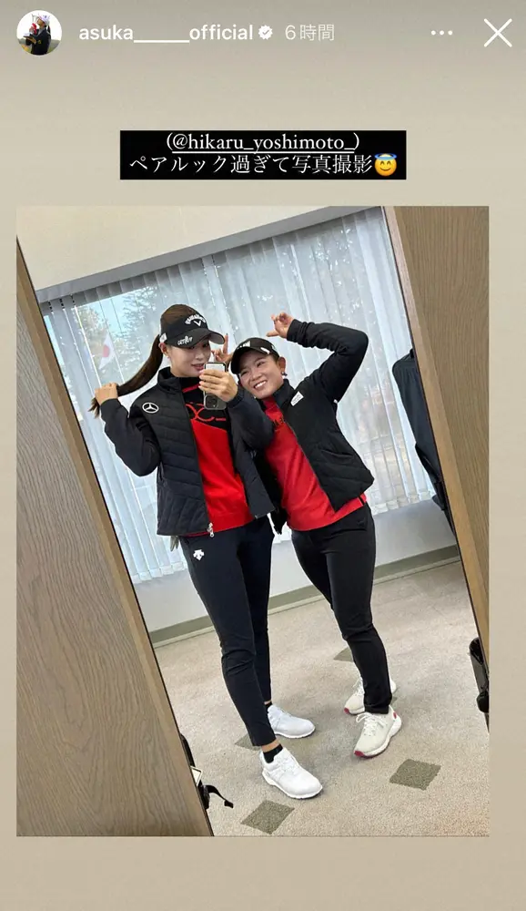 柏原明日架インスタグラム(@asuka_____official)から 女子ゴルフ・柏原明日架「びっくり」吉本ひかるとの“まるでペアルック”コ… ギャラリーで見る この記事のフォト 2022年11月19日の画像一覧 もっと見る 2022年11月19日の画像をもっと見る