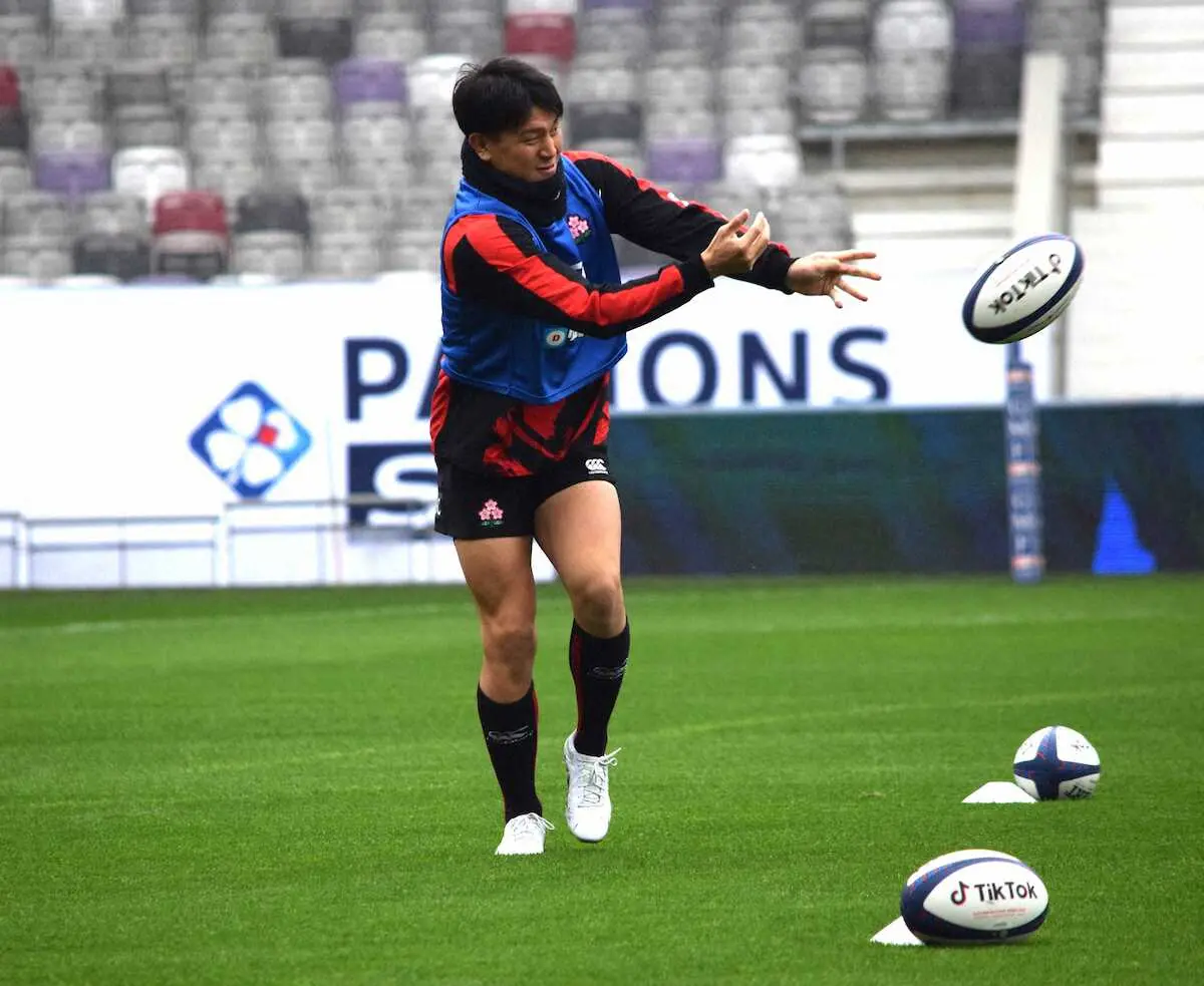 ラグビー日本代表は20日に「リポビタンDツアー2022」最終戦となるフランス戦(仏トゥールーズ)に臨む。19日には会場で前日練習を行い、冒頭15分を報道陣に公開。リザーブから初キャップを狙うSO中尾隼太(27=BL東京)は鋭いパスを何度も入念に確認した。