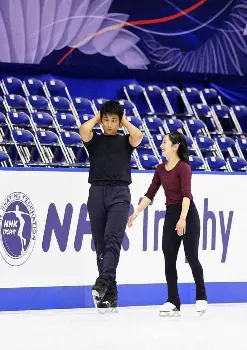 SPで首位発進したペアの三浦璃来、木原龍一組(木下グループ)が、フリーに向けて公式練習で調整した。