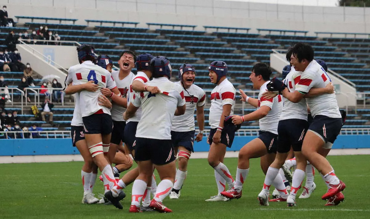 1メートル87のロック山本圭悟(3年)が勝利の立役者となった。相手ボールをスチールするなどラインアウトで持ち味を発揮し、好タックルに加えて後半26分には逆転トライもマーク。控え選手の協力を得て相手のラインアウトを徹底的に研究し、「今まで桐蔭学園に勝てなかった。自分たちの代で歴史の一ページをつくれてうれしい」と喜んだ。