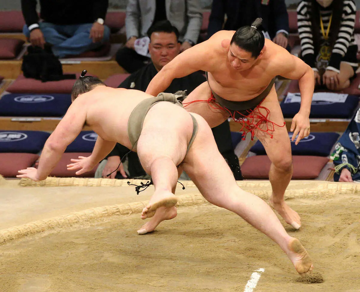 玉正鳳が立ち合い踏み込んで突き起こしてから下がりながら左へ回り込んではたき込み。「(相手が)低かったので、引いたらいけるんじゃないかと思った」と思い切った動きの良さが功を奏した。6番相撲では元大関の朝乃山(28=高砂部屋)を破る“大殊勲”。「人生で一番うれしい相撲でした」と振り返り、自信をつけて幕下優勝につなげた。