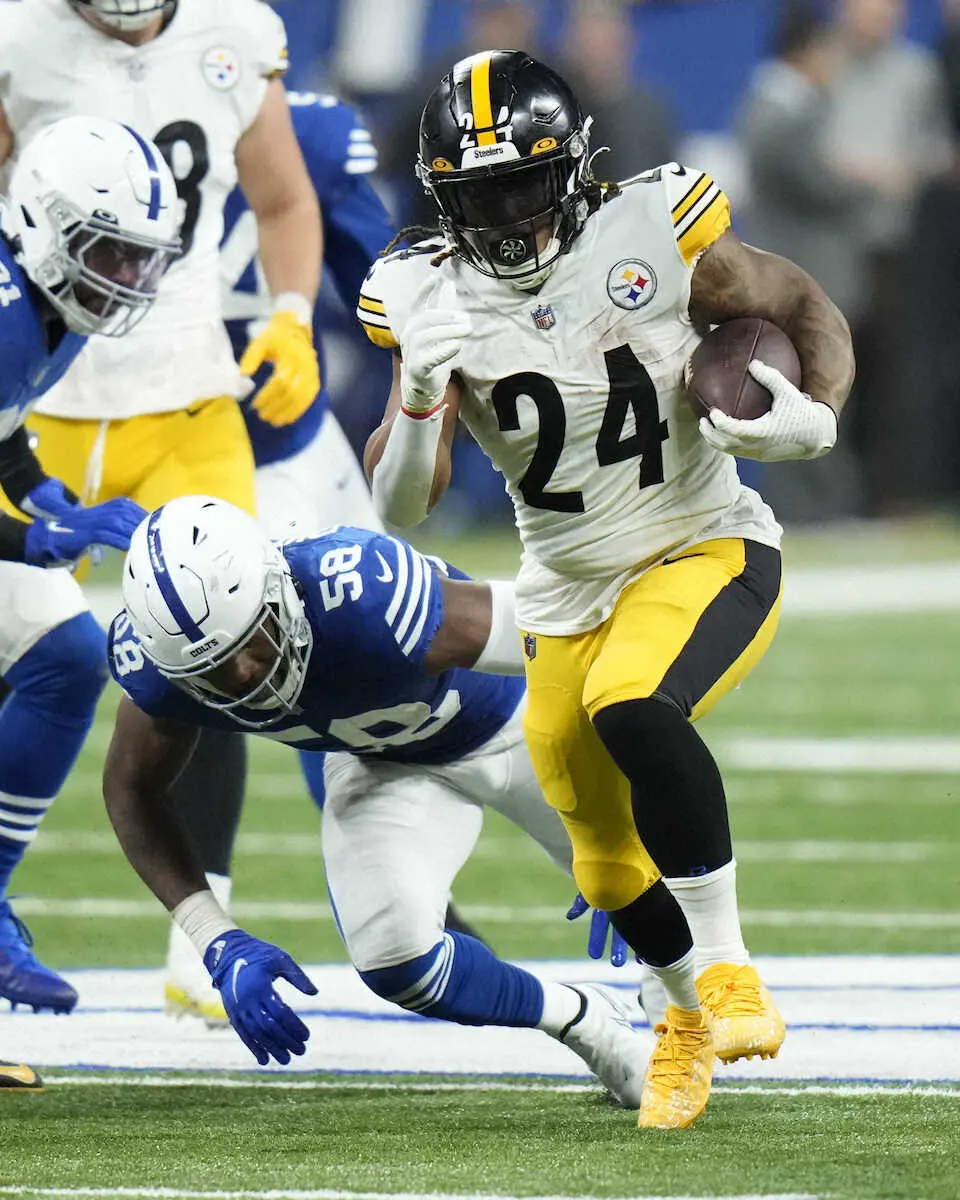 NFLは28日、インディアナポリス(インディアナ州)で第12週マンデーナイトの1試合を行い、スティーラーズが地元のコルツを24―17(前半16―3)で下して4勝7敗。16―17で迎えた第4Qの5分5秒、ベニー・スネルJR(24)が残り2ヤードを突破して敵陣エンドゾーンに飛び込み、2点コンバージョンも成功させてこのカードでは8連勝を飾った。