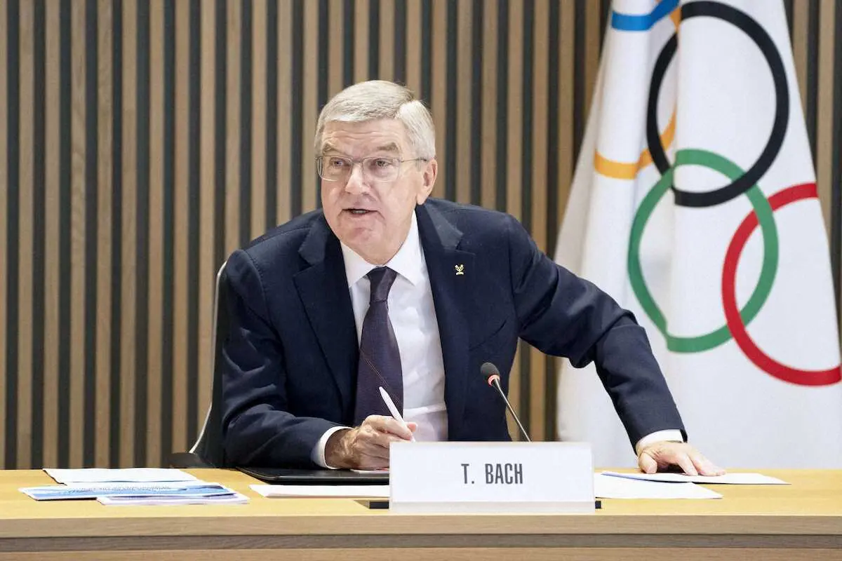 IOC理事会に出席したバッハ会長(IOC提供・共同)