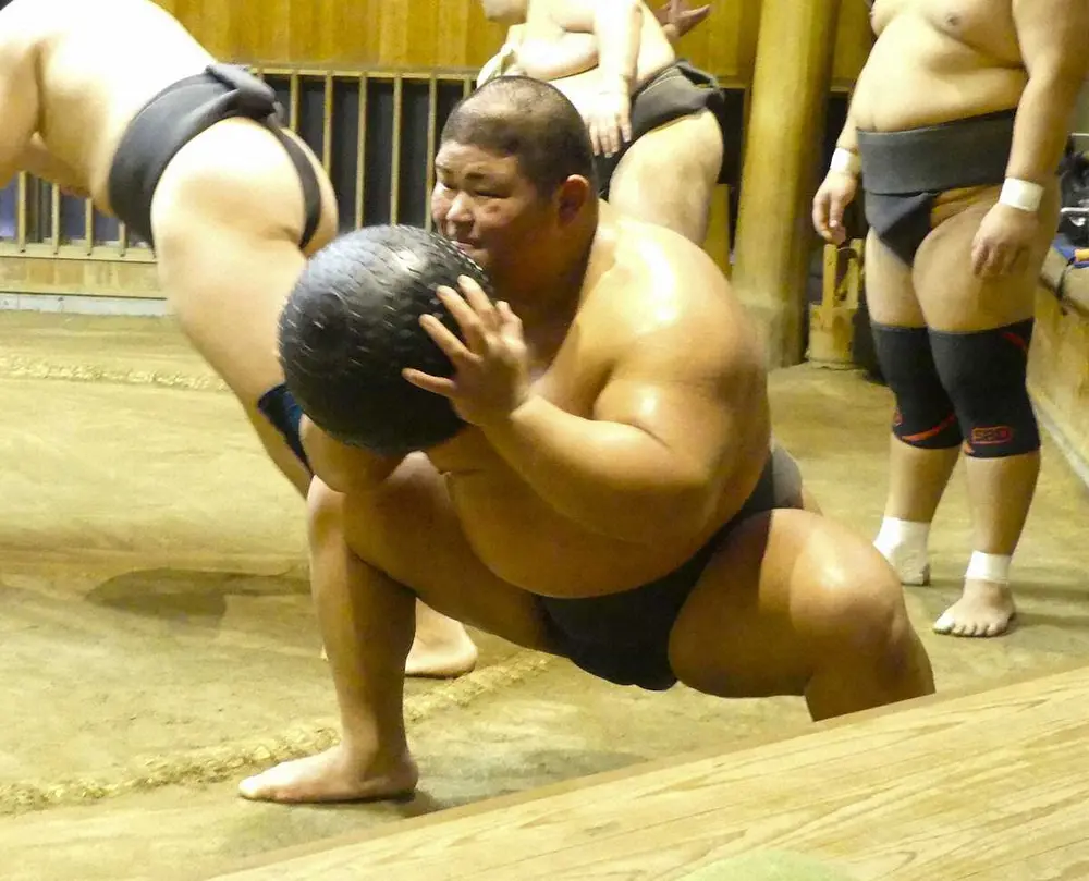 この日は申し合い稽古には参加せず、四股や鉄砲などの基礎運動を中心に約2時間しっかり汗を流した。20キロのおもりを持ってのすり足では苦悶(くもん)の表情を浮かべる場面も。師匠の宮城野親方(元横綱・白鵬)は不在だったが、前師匠の間垣親方(元幕内・竹葉山)や出稽古に訪れた大島親方(元関脇・旭天鵬)らの指導を受けた。前日の新弟子検査に続いて“プロ初稽古”を終え、また新たに力士人生の一歩を踏み出した。