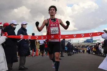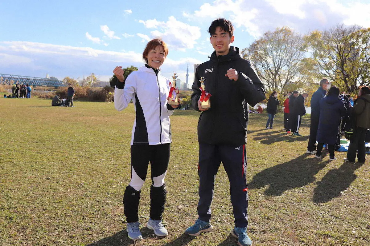 第11回足立フレンドリーハーフマラソン大会(スポニチ後援)は18日、東京都足立区の荒川河川敷で2549人がエントリーして行われた。ハーフマラソン総合男子は三角隼人(19=流通経済大)が1時間7分35秒で初出場初優勝、女子は好士理恵子(43=えもと塾)が1時間17分59秒で初優勝を飾った。それぞれ最優秀選手賞としてスポニチ杯が贈られた。