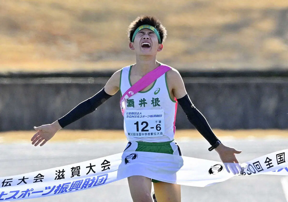 第30回全国中学校駅伝大会が18日、滋賀・希望が丘文化公園で行われ、男子の部(6区間18キロ)は、初出場の酒井根(千葉)が58分37秒で初優勝を果たした。2位は湯川(福岡)、3位には桂(京都)が入った。