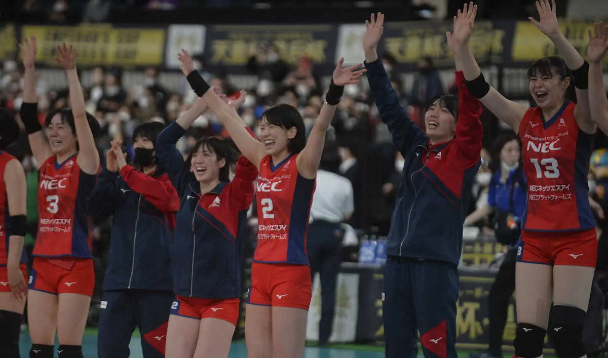 天皇杯・皇后杯全日本バレーボール選手権大会は18日、東京体育館で女子の決勝が行われ、NEC(V1・東京)が東レ(V1・滋賀)に3―1で競り勝ち、初の皇后杯を手にした。