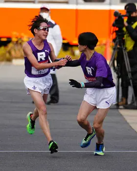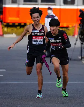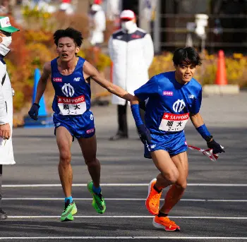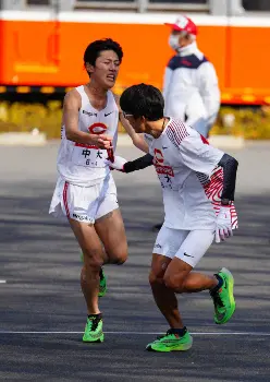 <第99回箱根駅伝・往路 小田原中継所>5区・脇田(左)にたすきを渡す青学大4区・太田(撮影・島崎忠彦) Photo by スポニチ 【箱根駅伝5区】青学大、往路V厳しい状況に 小涌園で首位と1分19秒差 2023年01月02日の画像一覧 もっと見る 2023年01月02日の画像をもっと見る