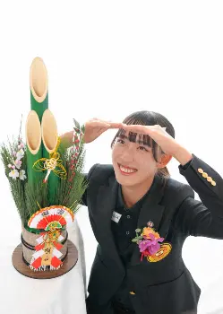 門松を前に、今年を見据える馬場咲希(撮影・河野 光希)
