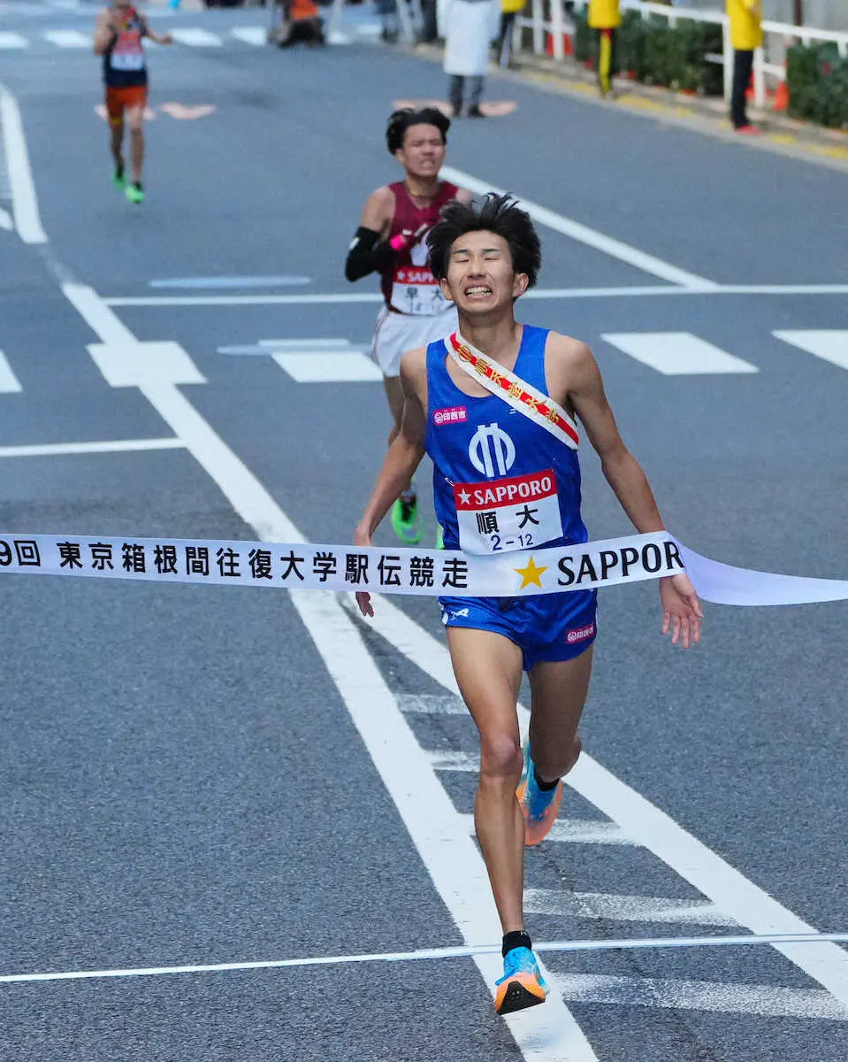 5位順大 西沢主将3人抜き10区区間賞「笑顔でゴールテープを切れてよかった」
