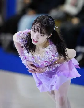 本田真凜、淡い紫の衣装でイナバウアー 名古屋フィギュアスケートフェスティバル