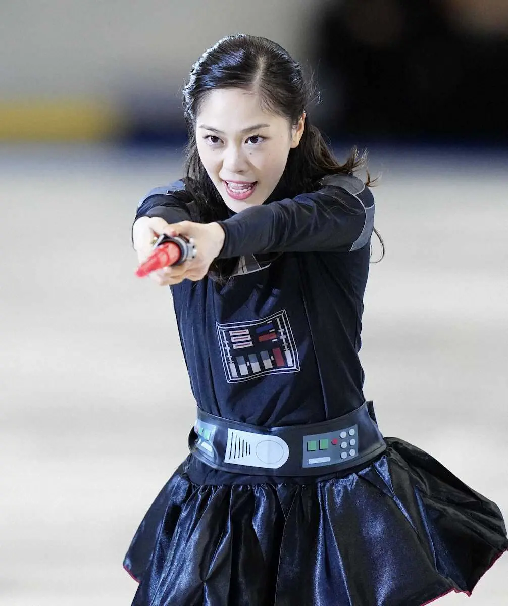 吉田陽菜、初滑りでダースベイダーに変身 ライトセーバー持って演技披露