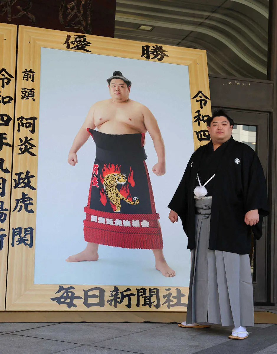 優勝額贈呈式は東京場所の初日前日に行われ、原則として直近2場所の優勝力士が並んで記念撮影に収まる。これに出席するのが2人とも平幕優勝力士というのは史上初のことだった。