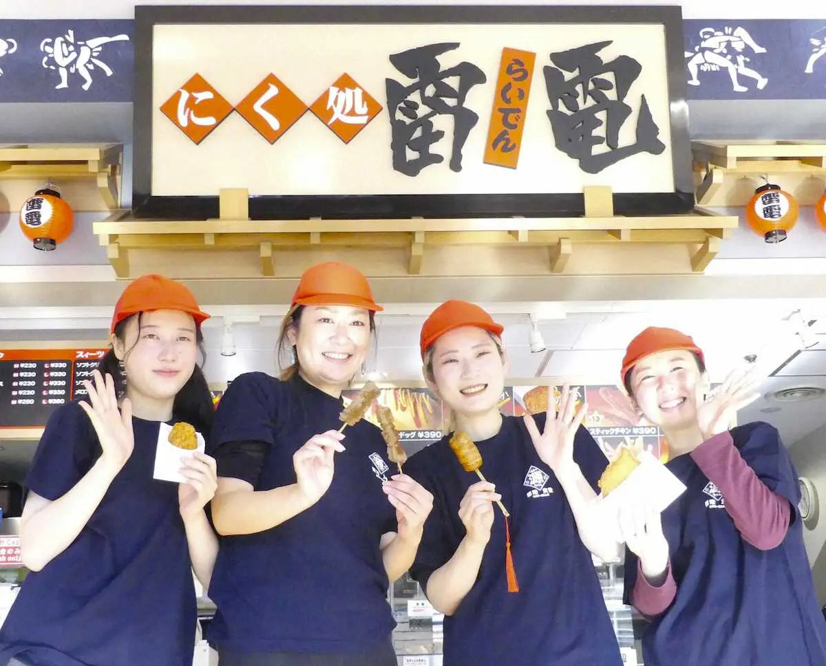これに伴い、国技館内の飲食メニューもさらに充実。今場所から、2階の「にく処雷電」と「すし処雷電」で新メニューが発売される。「にく処雷電」では、力士にちなんだメニューが登場。大関・貴景勝の好物で力の源でもある「牛串」、関脇・正代の地元である熊本名産の天草豚を使用した「メンチカツ」、幕内・御嶽海の地元である長野県が発祥の「山賊焼き」の3種類。先月末の力士会でそれぞれ関取が試食し、大好評だった。また、行司の軍配をイメージした房付きの肉巻きおにぎり「肉巻軍配」も新しく発売される。