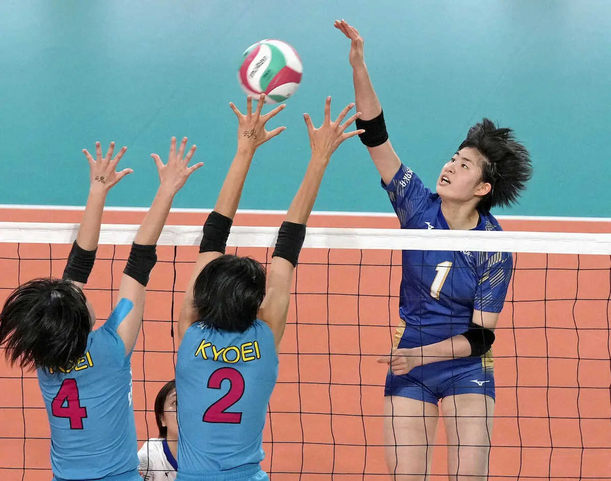 バレーボールの全日本高校選手権は6日、3回戦が行われ、女子は昨夏の全国高校総体優勝の金蘭会(大阪)が2―0で鹿児島実に快勝し、準々決勝に進んだ。