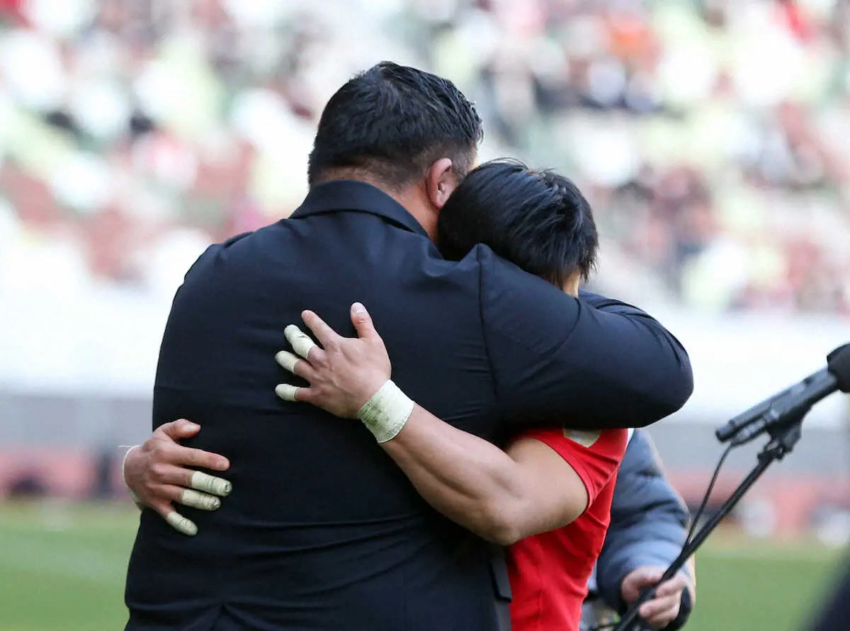 帝京大・松山主将&相馬監督 “勝利後のお決まり”熱いハグで喜び表現「最高でした」