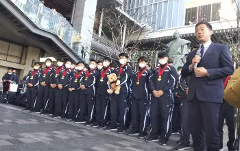 東福岡・藤田監督 「大川が大優勝旗を持って博多駅を歩いている姿を想像して頑張ってきた」 優勝報告会