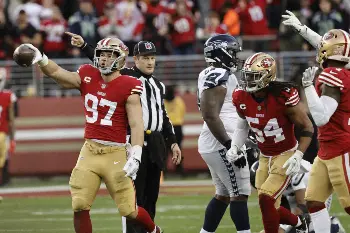 NFLのプレーオフが14日にスタート。その“オープニング・ゲーム”としてカリフォルニア州サンタクララで行われたNFC1回戦(ワイルドカード・ゲーム)では、第2シードで地元の49ers(西地区1位=13勝4敗)が第7シードのシーホークス(西地区2位=9勝8敗)を41―23(前半16―17)で下し、2年連続でカンファレンス準決勝に駒を進めた。