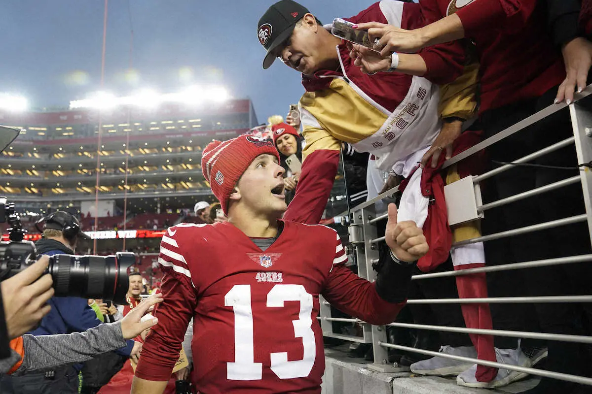 新人QBのブロック・パーディー(23=アイオワ州立大出身、185センチ、100キロ)は30回中18回のパスを成功させて自己最多の332ヤードをマークし、パスで3つ、ランで1つの計4TDを稼いでチームを引っ張った。新人QBがプレーオフで4TDをマークしたのはパーディーが初めて。パス獲得332ヤードは、10年前のラッセル・ウィルソン(シーホークス=現ブロンコス)の385ヤードに次ぐ新人QBとして2番目の記録となった。