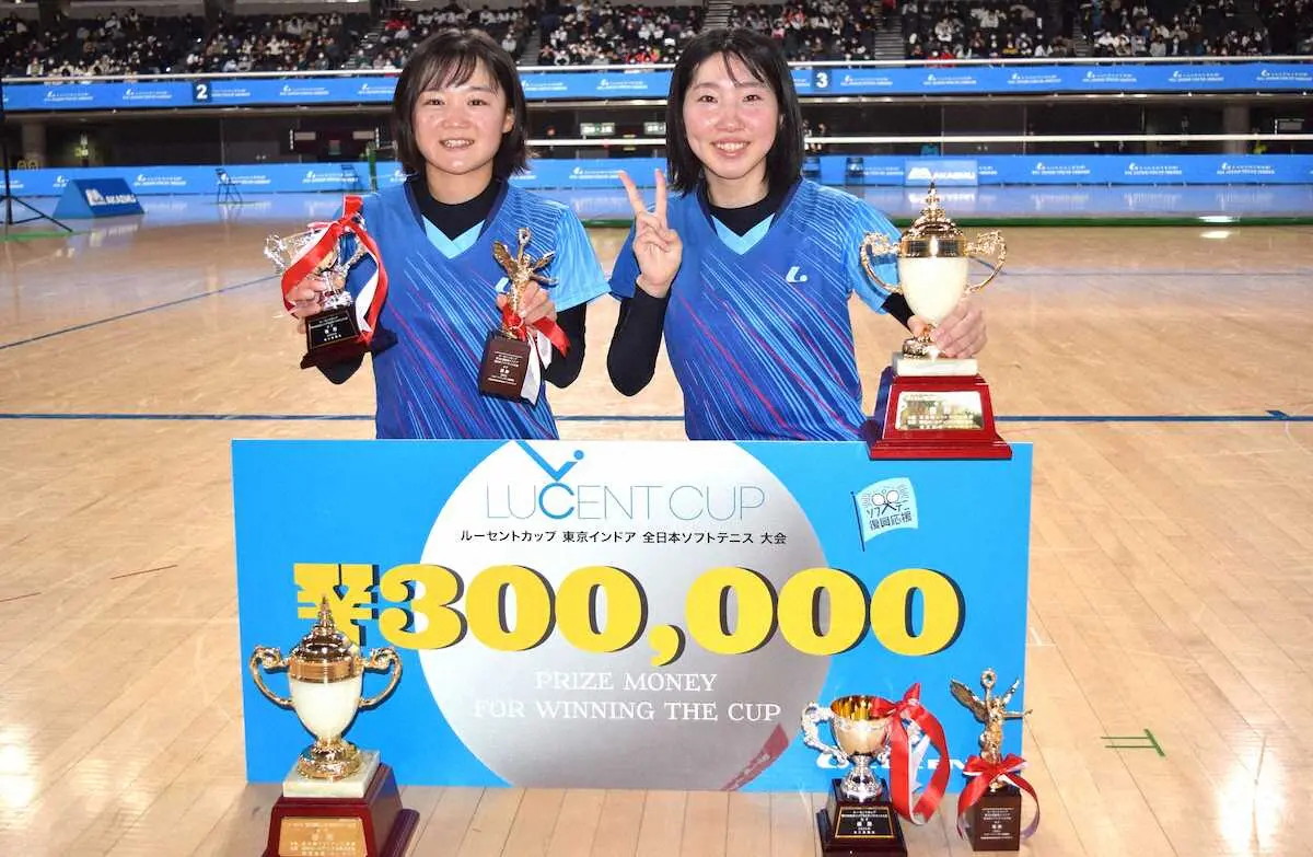 <ルーセントカップ第63回東京インドア全日本ソフトテニス大会>男子で18年以来2回目の優勝の船水(左)と上松組 Photo by スポニチ インドア全日本ソフトテニス大会 男子・船水&上松組、女子・高橋&半谷… ギャラリーで見る この記事のフォト 2023年01月16日の画像一覧 もっと見る 2023年01月16日の画像をもっと見る
