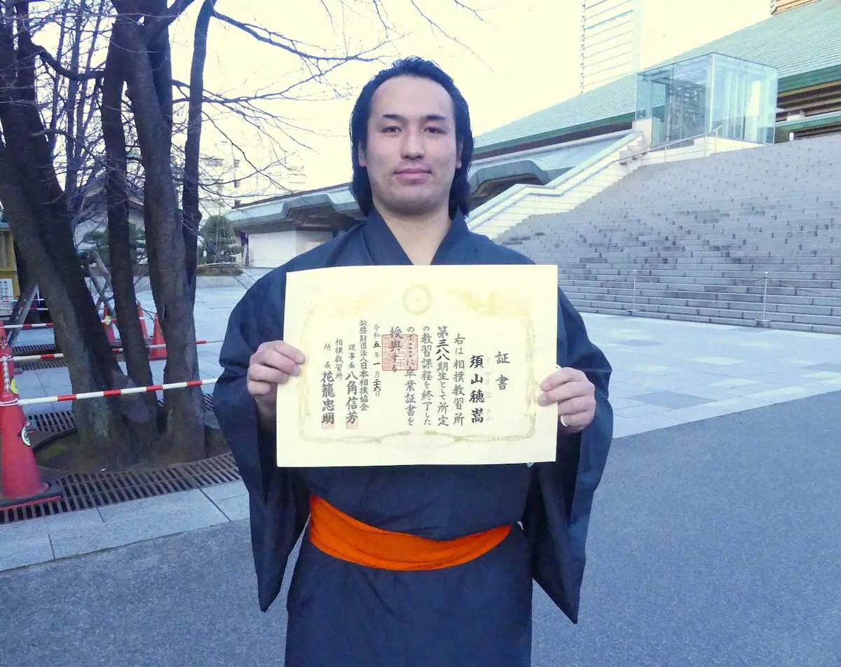 東大生・須山が“卒業証書”を手に「次は大学ですね」 運動医学など学んだ相撲教習所を卒業