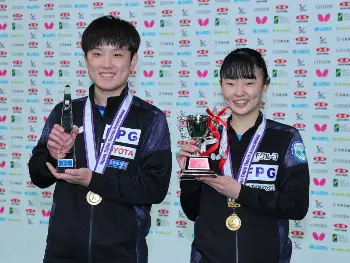目指すゴールはここではないとばかりに、はりひなペアの2人は優勝を決めても静かにハイタッチを交わすのみだった。田中姉弟との決勝は3―0で圧倒。結局、全6試合で落としたのは1ゲームのみという準完全Vに、張本智が「途中で何試合か苦しい試合があったが、そこを乗り切って優勝できたので素直にうれしい」と話せば、早田も「昨年の反省を生かし、初戦から凄くいい状態で試合ができた」と語った。