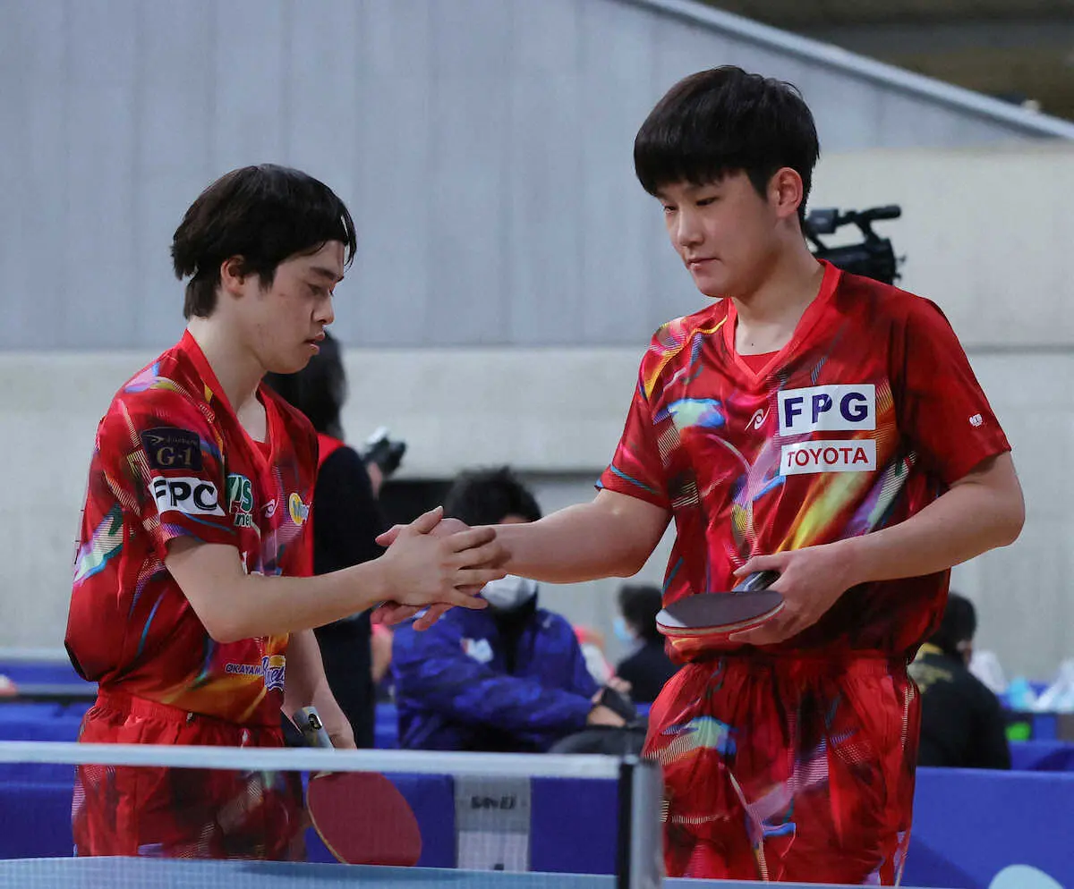 男子ダブルス張本智・森薗組が4強入り 張本智は3冠へ前進