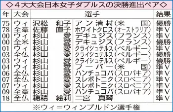 決勝に進出した青山・柴原組(AP) Photo by AP 女子ダブルス青山・柴原組 4大大会日本人ペア初V王手!日本人の決勝は18… ギャラリーで見る この記事のフォト 2023年01月28日の画像一覧 もっと見る 2023年01月28日の画像をもっと見る
