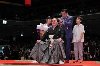 断髪式の最後に、土俵上であいさつを終えた宮城野親方は土俵にひざまずいて額をつけ、涙を拭った。そのしぐさは、現役最後の一番となった21年名古屋場所千秋楽、照ノ富士との全勝決戦に臨む土俵下で見せたものと同じ。別れを告げる土俵に対する、最大の敬意と感謝の気持ちが表れていた。