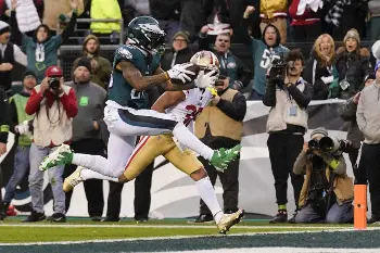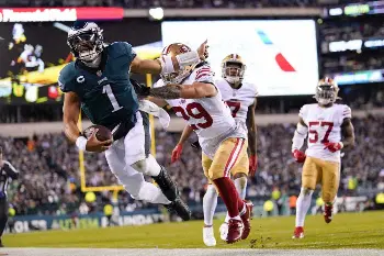 イーグルスがNFC決勝で快勝 4回目のSB出場 49ersの新人QBパーディーは1Qに右ひじを負傷