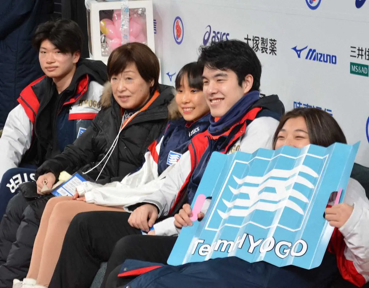 リンクサイドでは坂本花織ら兵庫チームが見守り、会場からは手拍子もあった。「みんなのパワーのおかげ。本当に幸せ」と振り返り、「チーム兵庫で優勝できるようにフリーに向けて切り替えたい」と話した。