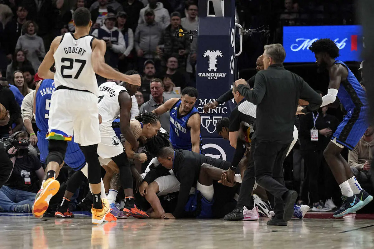 その直前にマジックのベンチ前で3点シュートを外したオースティンをバンバが野次ったことが原因と見られており、乱闘を阻止しようとして“過度の行為”と判断されたティンバーウルブスのトーリーン・プリンス(28)、ジェイデン・マクダニエルズ(22)、さらにマジックのジェイレン・サッグス(21)を加えた計5人が退場処分となった。