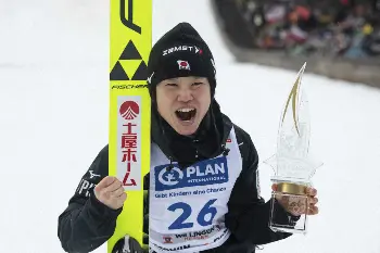 難コンディションの中、驚異のジャンプを2本そろえた。1本目に137メートルを飛んで1位につけた伊藤は「台と運が味方してくれている」とプレッシャーをはねのけ2回目も134・5メートルを飛び、合計233・3点で17年3月以来6年ぶりとなる優勝をつかみ取った。優勝が決まり3位の高梨と2位の丸山と3人で熱い抱擁。女子史上初の表彰台独占の一番高いところに立った伊藤は「歴史的な一日になったと思う」と二重の喜びをかみ締めた。