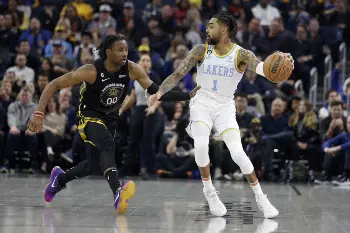 レイカーズは11日、敵地サンフランシスコ(カリフォルニア州)で昨季王者のウォリアーズと対戦。通算得点の新記録を樹立したレブロン・ジェームズ(38)は足首の故障で2試合連続で欠場したが、同点5回を数えた第4Q(24―24)の接戦を制して109―103(前半51―52)で勝利を収め、連敗を3で阻止して今季の成績を26勝31敗とした。