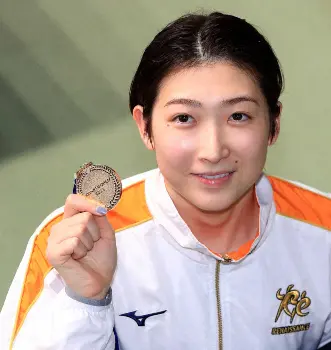 女子100メートルバタフライ2位になりメダルを手にする池江(撮影・久冨木修)