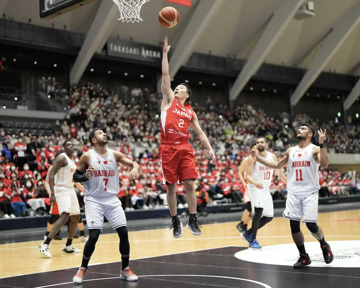 日本がバーレーンに95―72で快勝した。アジア予選を5連勝で締めくくり、通算7勝5敗。日本国籍を取得してデビュー2戦目のホーキンソン・ジョシュ(27=信州)が22得点10リバウンドのダブルダブルを達成した。須田侑太郎(31=名古屋D)が6本の3点シュートを含む20得点の活躍。第4Q残り6分53からは富樫勇樹(29=千葉J)、河村勇輝(21=横浜BC)の2人の小兵ガードを同時起用する布陣もテストした。