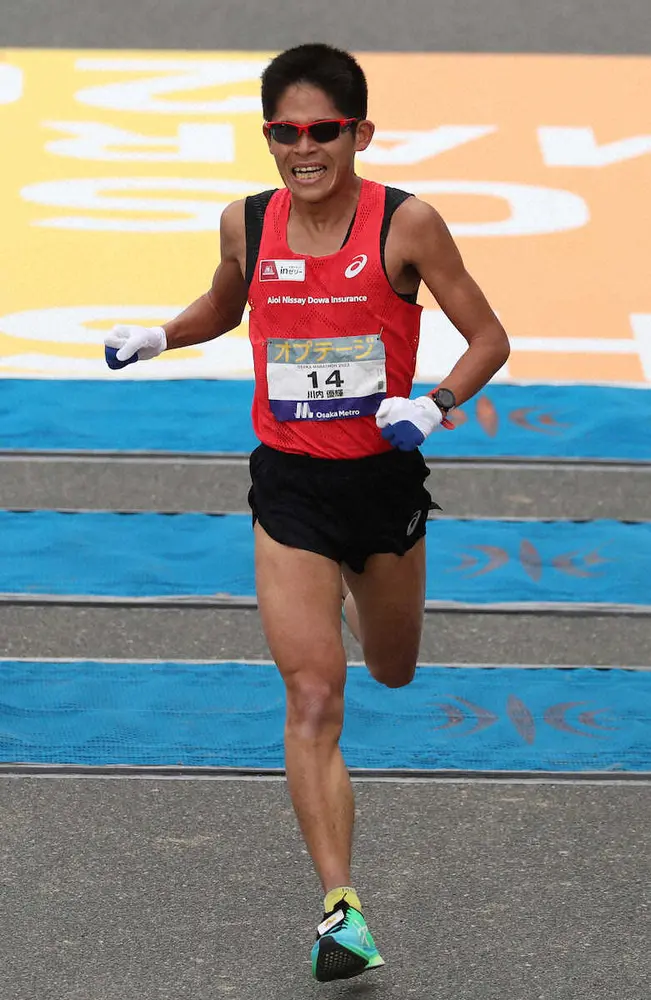 123回目のマラソン挑戦となった川内優輝(あいおいニッセイ同和損保)が、自己ベストまで8秒差と迫る2時間7分35秒で12位に入った。