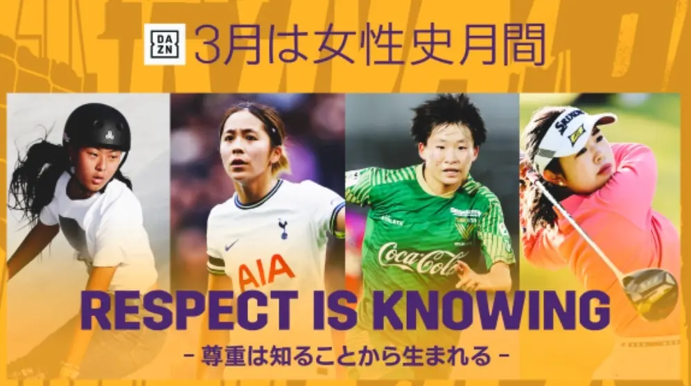 DAZNでは女子スポーツの認知向上を企業ミッションに、「DEI」(Diversity<多様性>、Equity<公平性>、Inclusion <包括性>)の取り組みを展開。2021年からは3月を「Women’s History Month」と定め、女子スポーツコンテンツを拡充している。