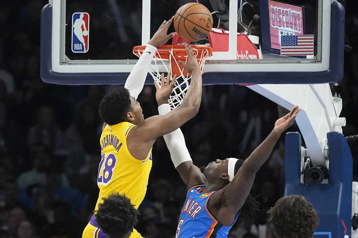 レイカーズは1日に敵地オクラホマシティー(オクラホマ州)でサンダーと対戦し、123―117(前半57―60)で勝利を収めて30勝33敗。数週間の離脱が確定しているレブロン・ジェームズ(38)や足首を痛めているディアンジェロ・ラッセル(27)に加え、今季25・8得点、12・6リバウンドながら脚に不安を抱えているアンソニー・デービス(29)も2日連続の試合とあって欠場したが、終盤での競り合いを制して逃げ切った。