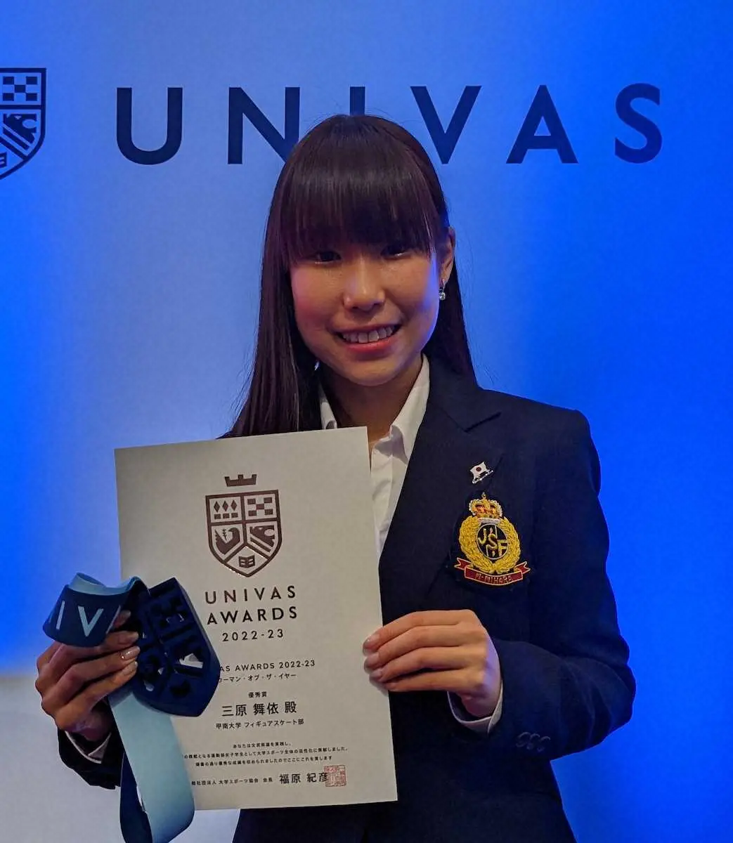 フィギュアスケート女子で今季のGPファイナル女王の三原舞依(シスメックス)が6日、都内で行われた「UNIVAS AWARDS 2022―23」(ユニバス・アウォーズ)に出席した。