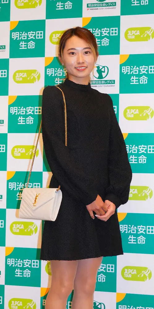 国内女子ツアー2戦目となる明治安田生命レディースヨコハマタイヤの前夜祭で、安田祐香(22=NEC)は、黒一色の上品なドレスを着こなしていた。